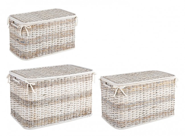 Set3 P.Oggetti Stacy - Set di oggetti in rattan e bambù con tessuto in poliestere e cotone